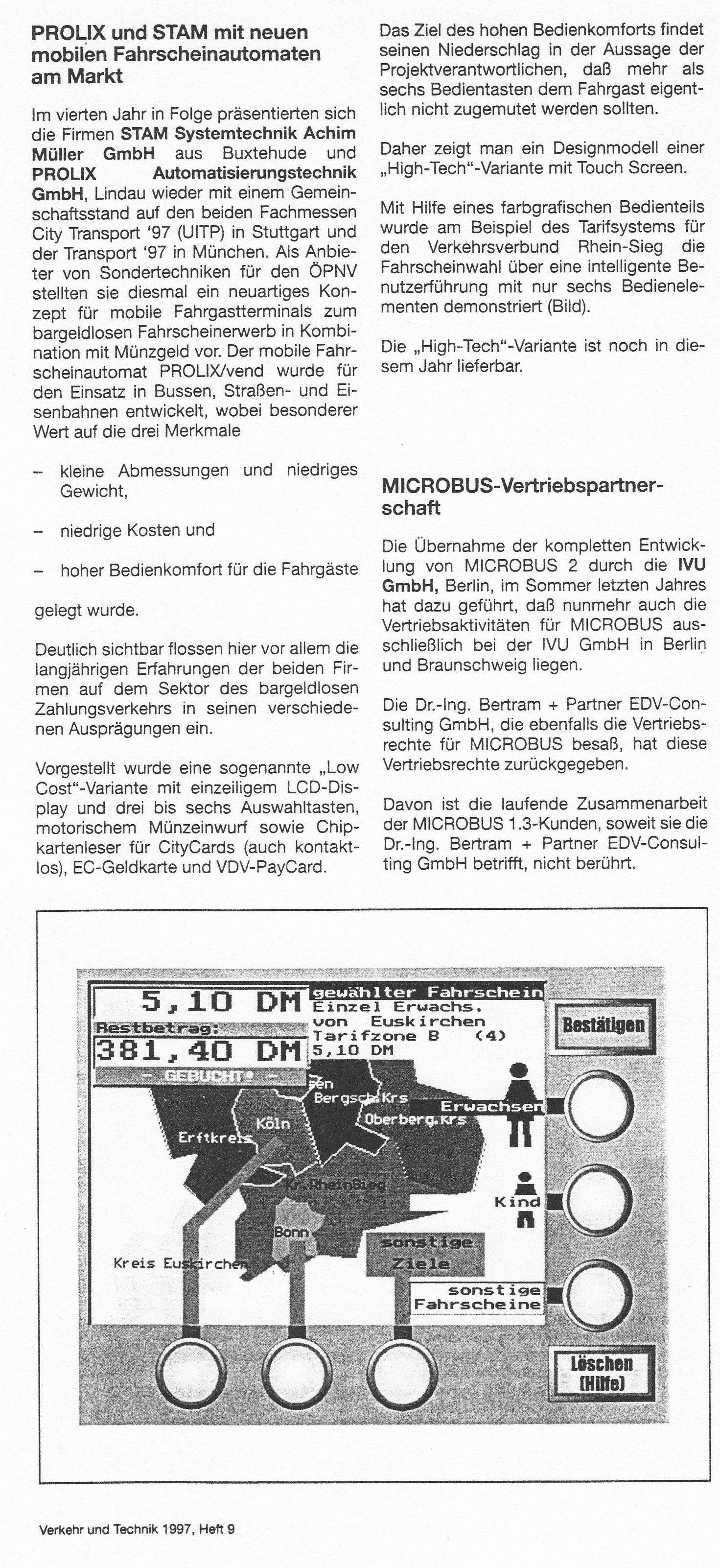 - PROLIX und STAM mit neuen mobilen Fahrscheinautomaten am Markt (Verkehr und Technik, Ausgabe 9/1997)
