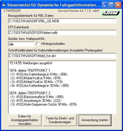 Das Steuermodul DFI stellt die in der Zentrale über das STAMrbl-ü bzw. InfoSTAM erfassten Betriebszustände für die einzelnen Anzeigen an den verschiedenen Haltestellen so zusammen, dass sie laufend und aktuell mit den entsprechenden Informationen versorgt werden.